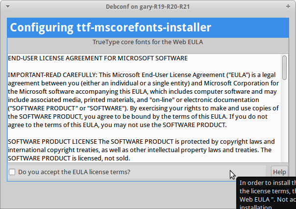 Half way through the installation of Xubuntu Restricted Extras you will be asked whether you accept the license terms and conditions.