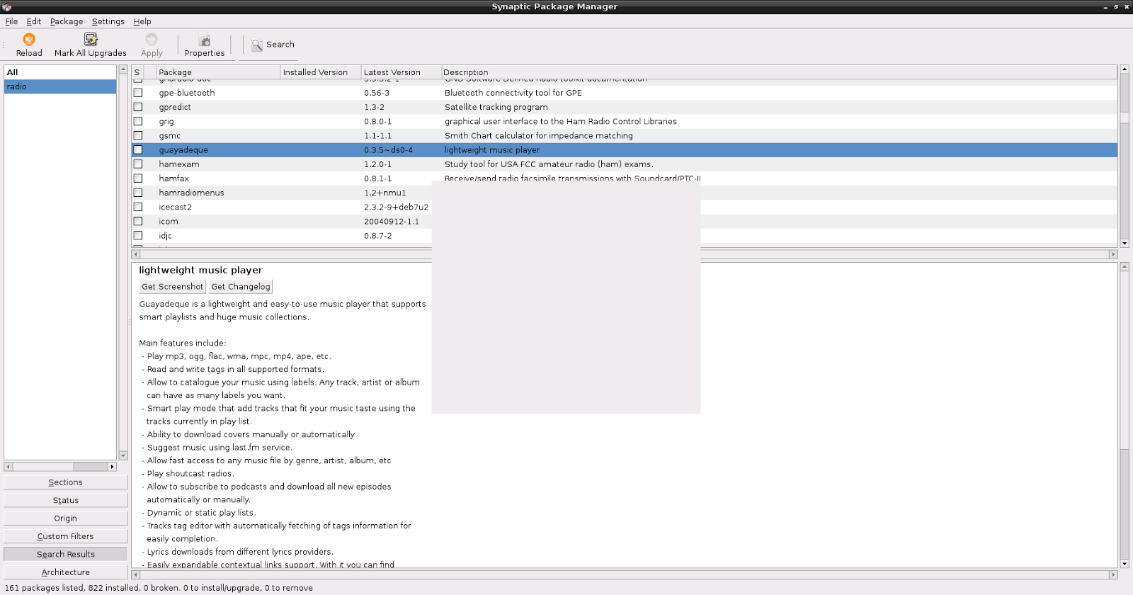 The package management isn't quite as crisp as I'd like it. There are a number of tools that enable you to search the repositories but then do not provide a final install button. The "Install Package" option works perfectly well though.