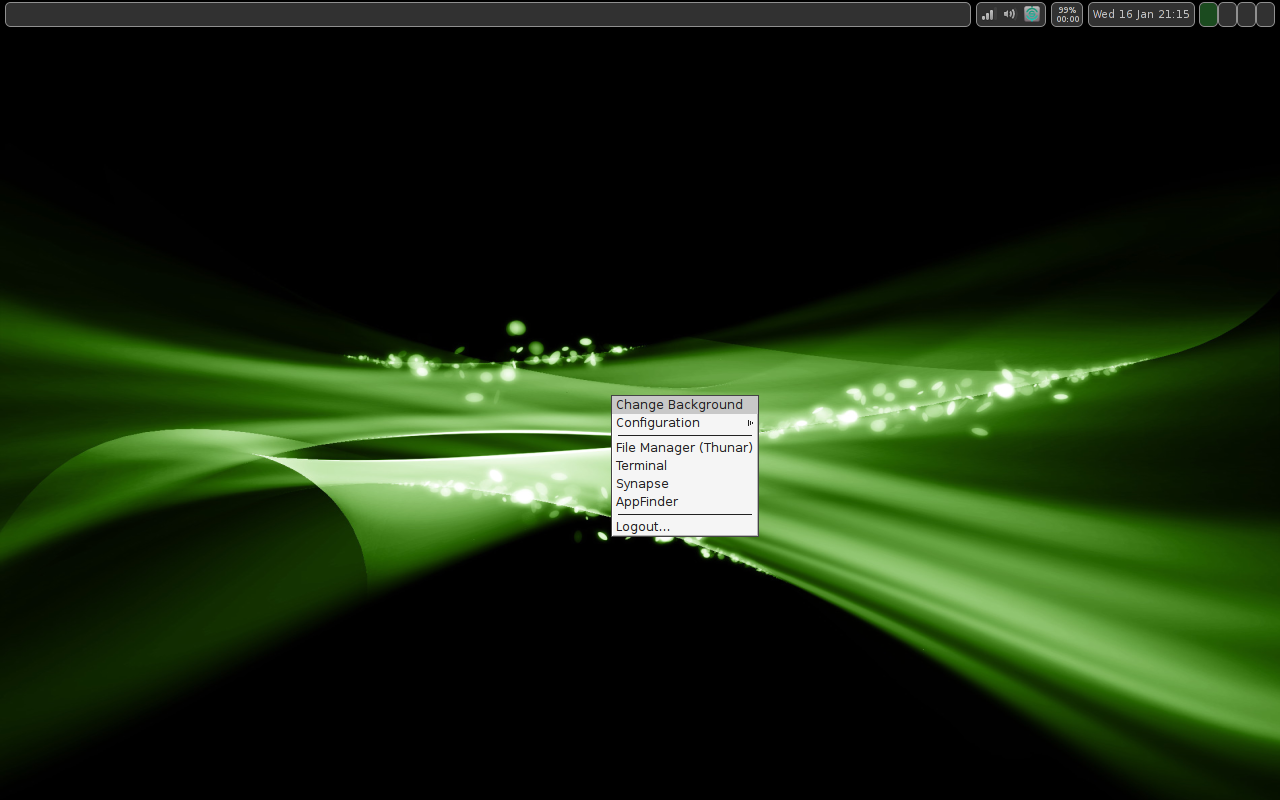 If you aren't happy with the default wallpaper you can customise it by right clicking on the desktop and choosing the change background option.