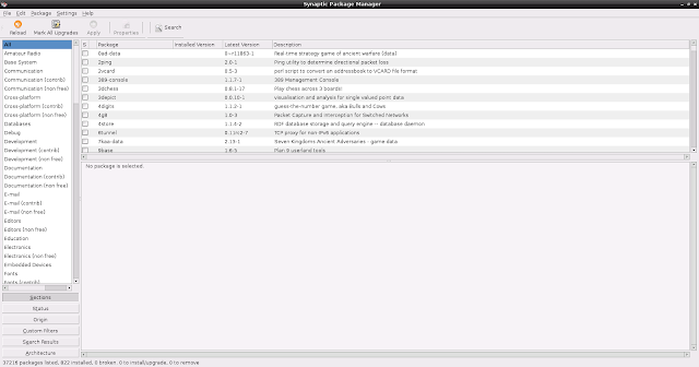 In the top left window is a list of categories to search. These are structured by the different repository groups rather than standard categories. So instead of browsing by Audio, Games, Office etc you browse by Extras, Foreign, Community, Platform etc.