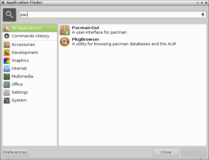 The Application Finder is a simple to use graphical tool to find the applications that are installed within Manjaro.