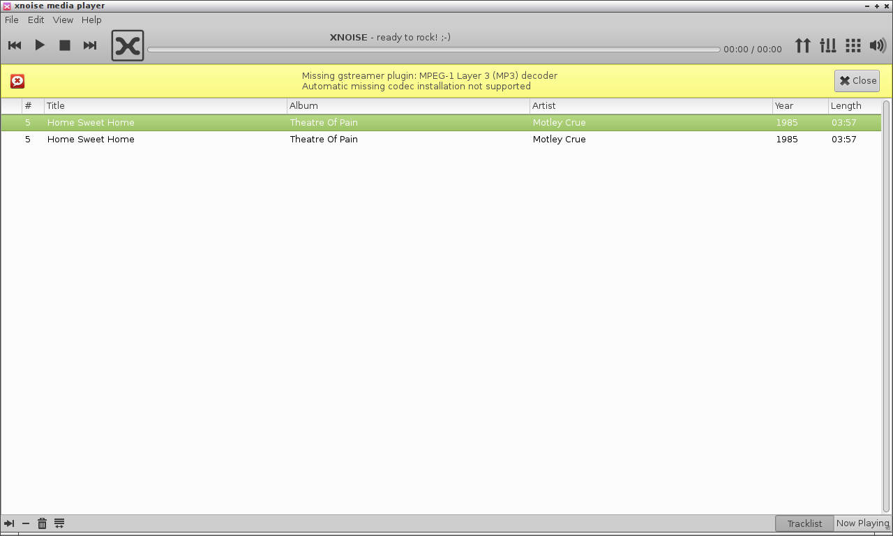 I tried to play a few MP3 files but I received the error "Missing gstreamer plugin: MPEG-1 layer 3 (MP3) decoder. Automatic missing codec installation not supported".