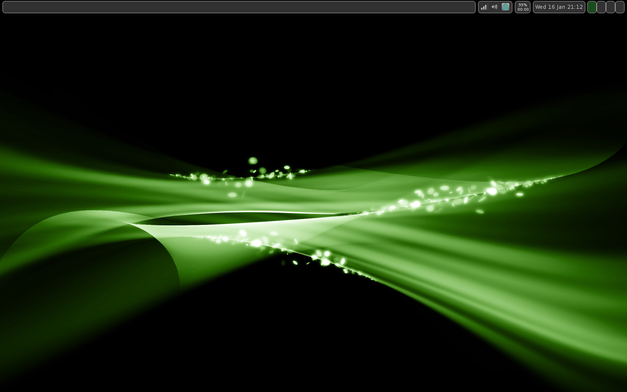 Other than the stylish wallpaper there is a task bar at the top split into sections. The first section of the taskbar is used to highlight the applications that are currently running. The second section has icons for network connectivity, audio settings and an icon for the Synapse search tool which will be described later on. Following this there is a section which provides the battery status and a calendar. Finally there are 4 boxes to indicate the individual virtual desktops that are available.