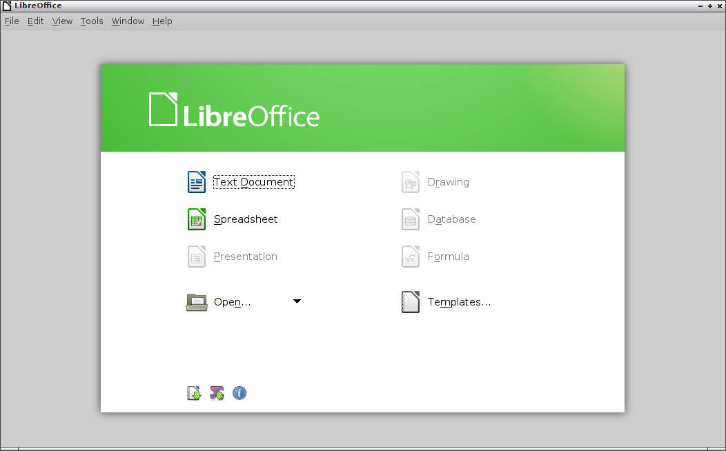 LibreOffice is not installed by default but there is a LibreOffice installer available from the Synapse search tool.