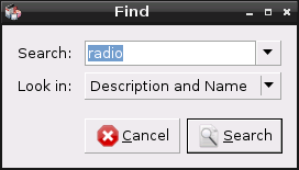 When you press the search button a list of applications appear in the top right hand corner. If you click on an item then a description appears in the bottom right hand corner.