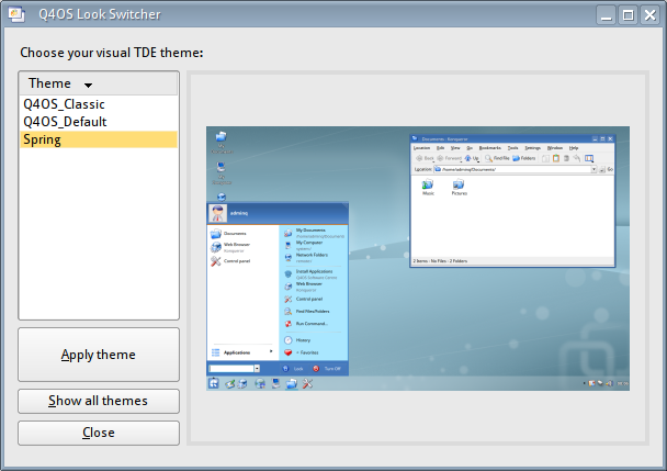 One of the applications you can install from the installation screen is the Q4OS look switcher.