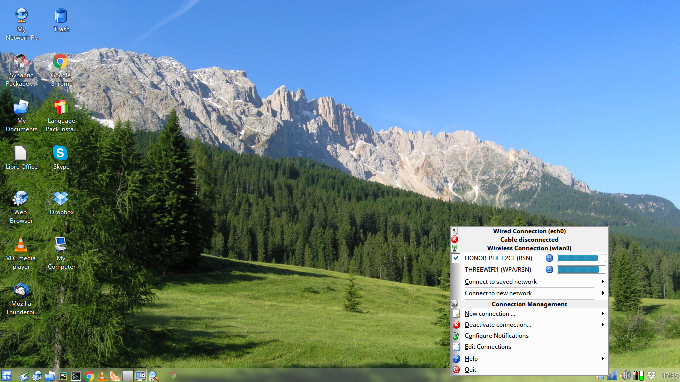 The desktop is very much like Windows with desktop icons, a panel, menu, quick launch icons and a system tray.